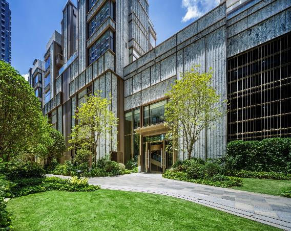 特邀知名園境師 ADRIAN L. NORMAN 操刀,以「水的生命力」為靈感,打造佔地盤逾 30% 的特色園林。33 米室外泳池、瀑布水景與藝術雕塑層層展開,讓日常更接近度假酒店的節奏。